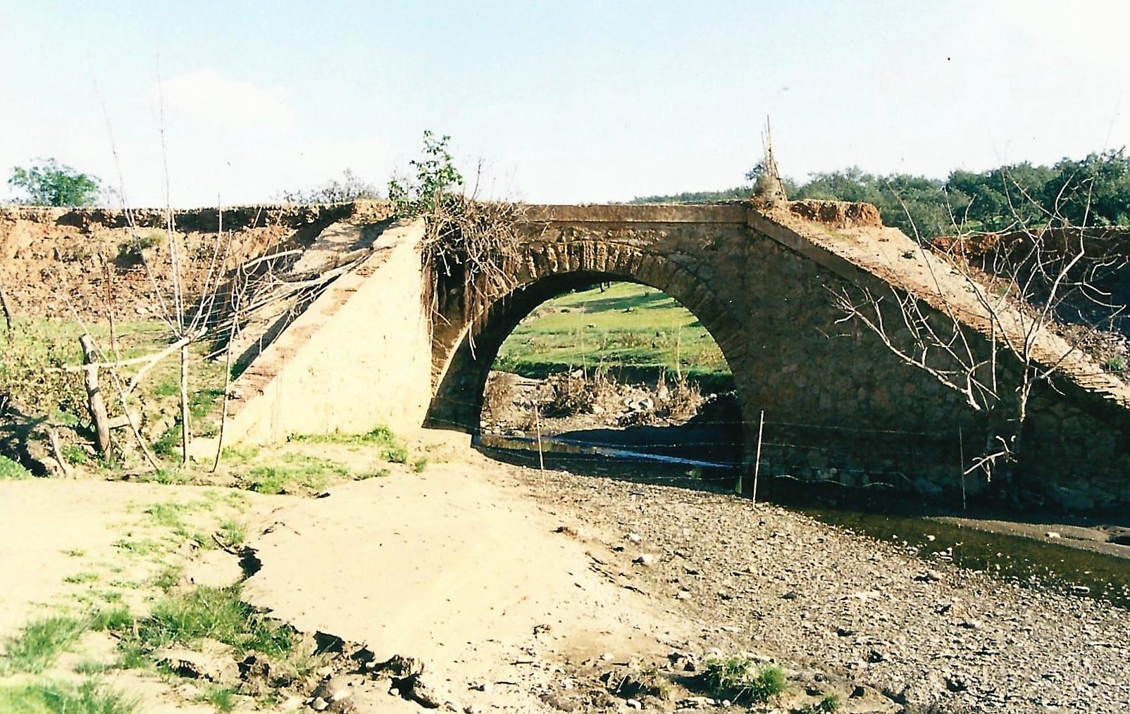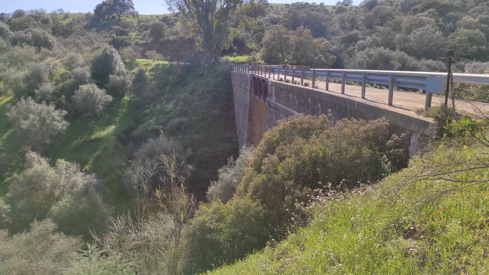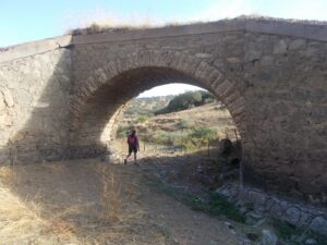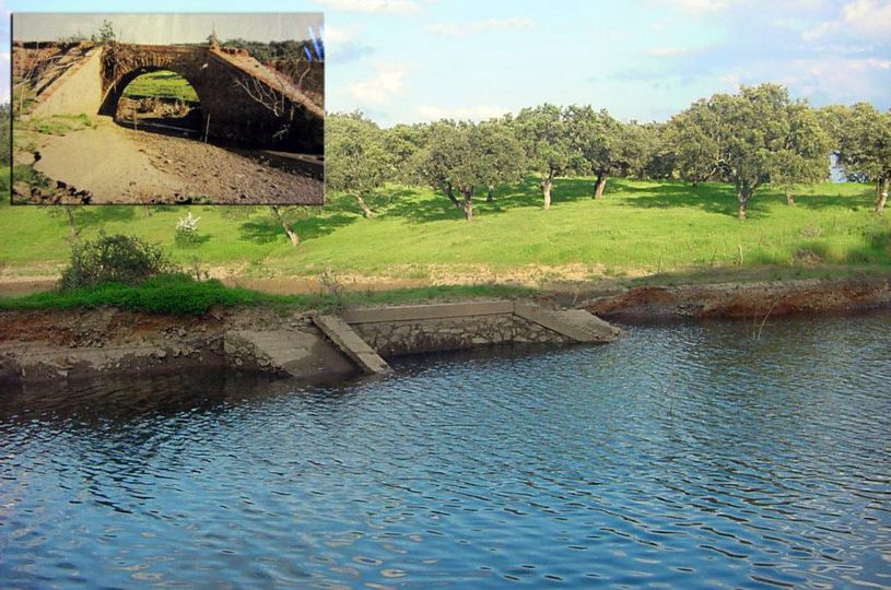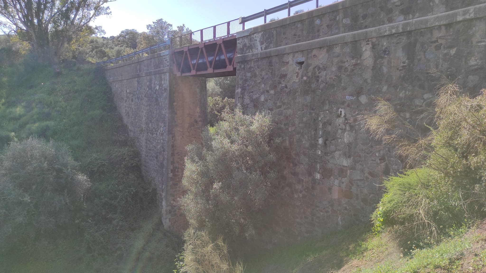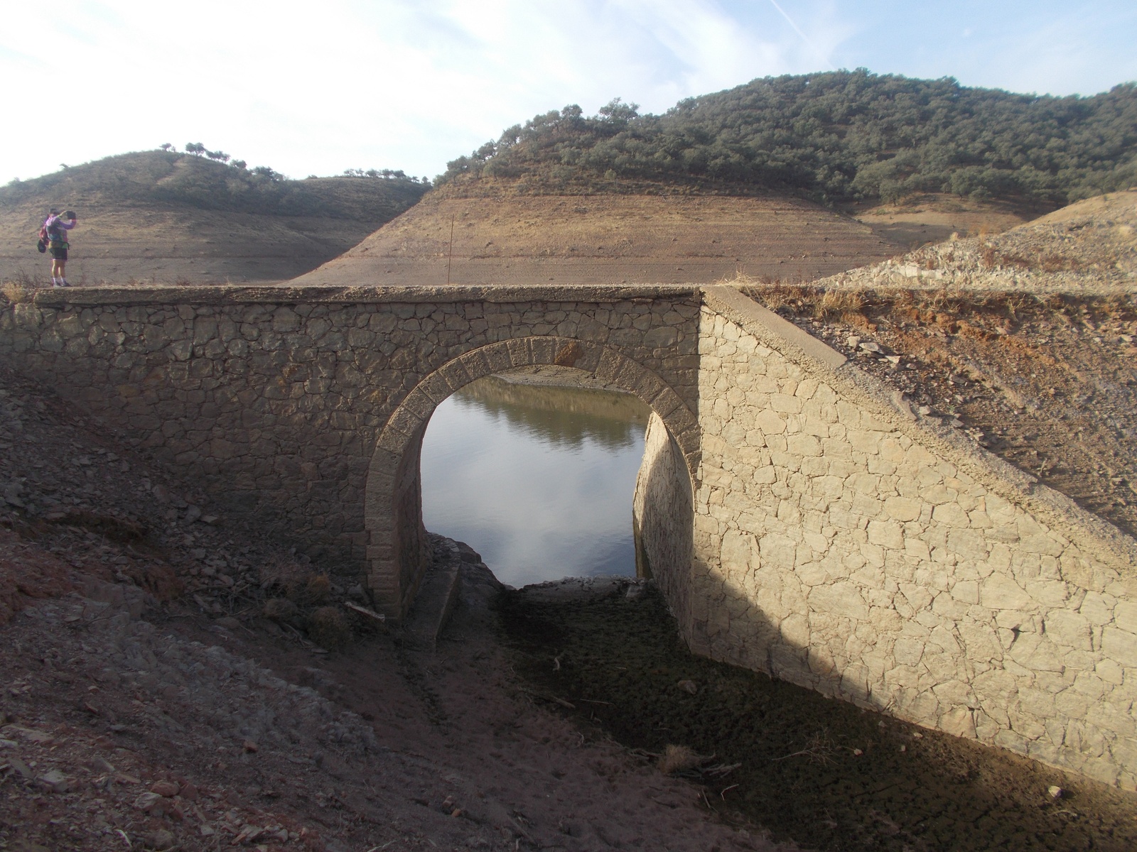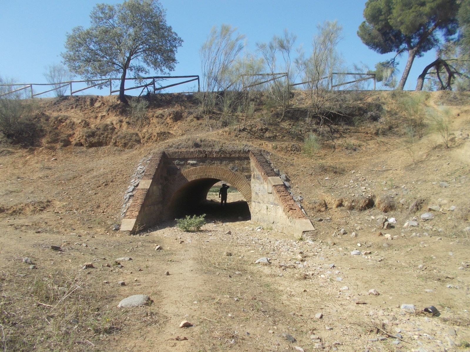 Otra característica notable del pontón es su considerable envergadura, perfectamente perceptible al compararse con la escala humana ofrecida por la figura de una persona visible en la imagen siguiente. Esta dimensión sugiere que, aunque se tratase de un paso menor, el caudal que debía evacuar no era despreciable, por lo que se optó por una solución estructural más ambiciosa y resistente.