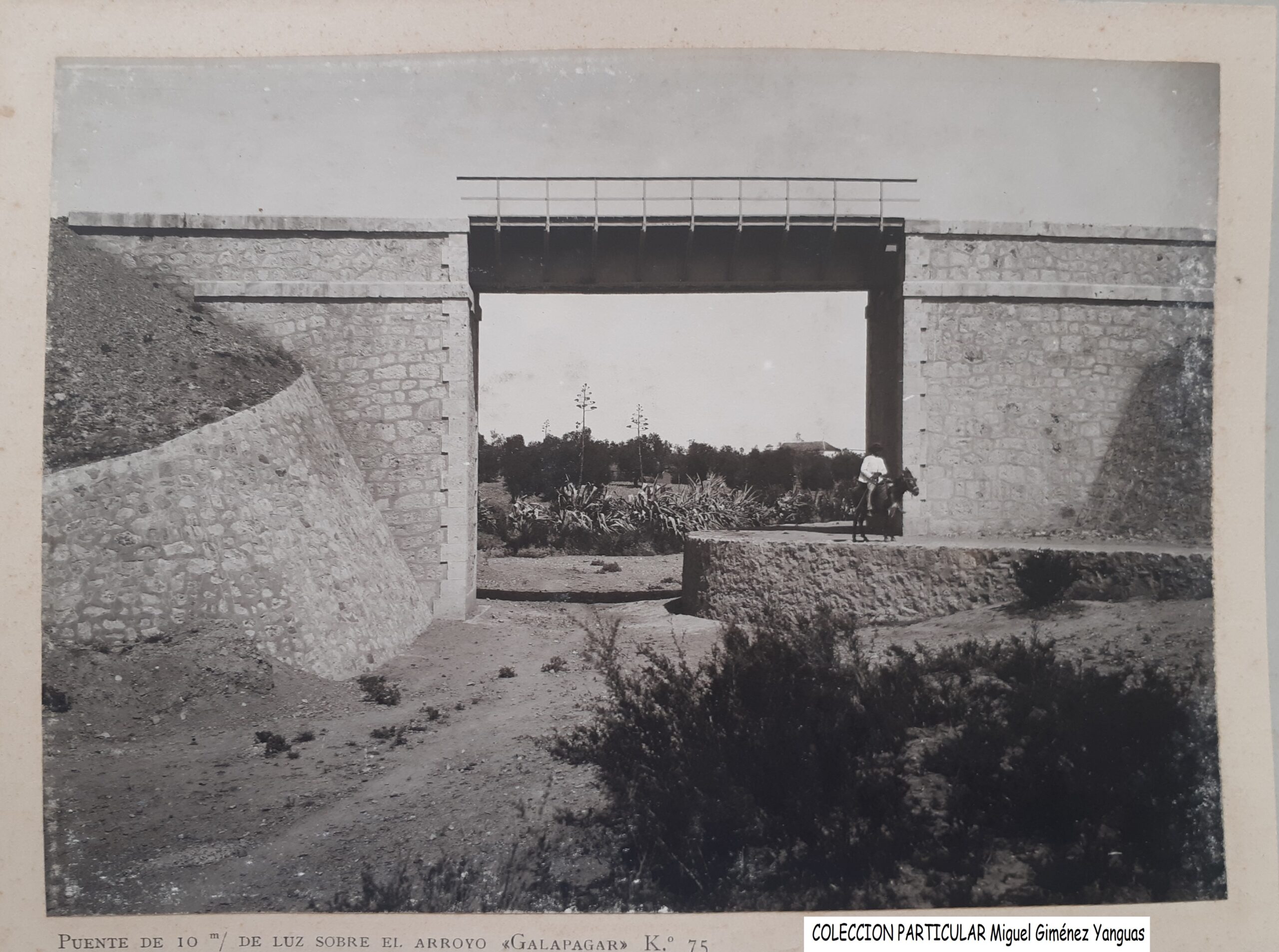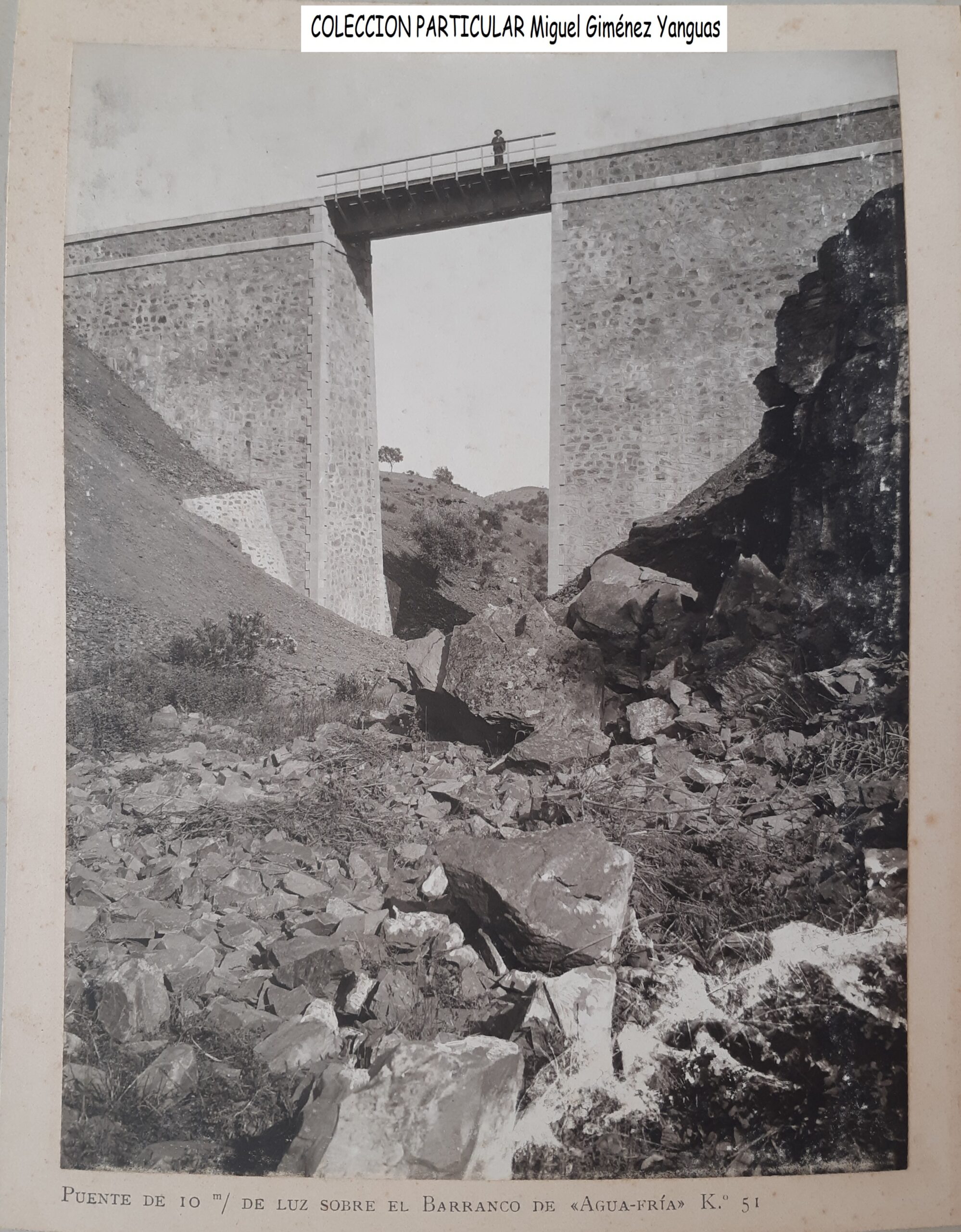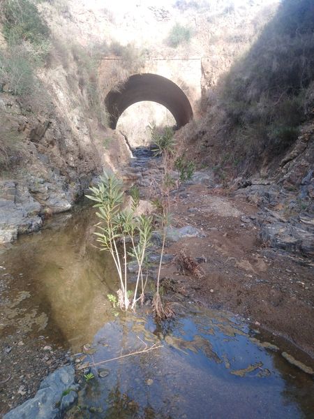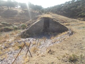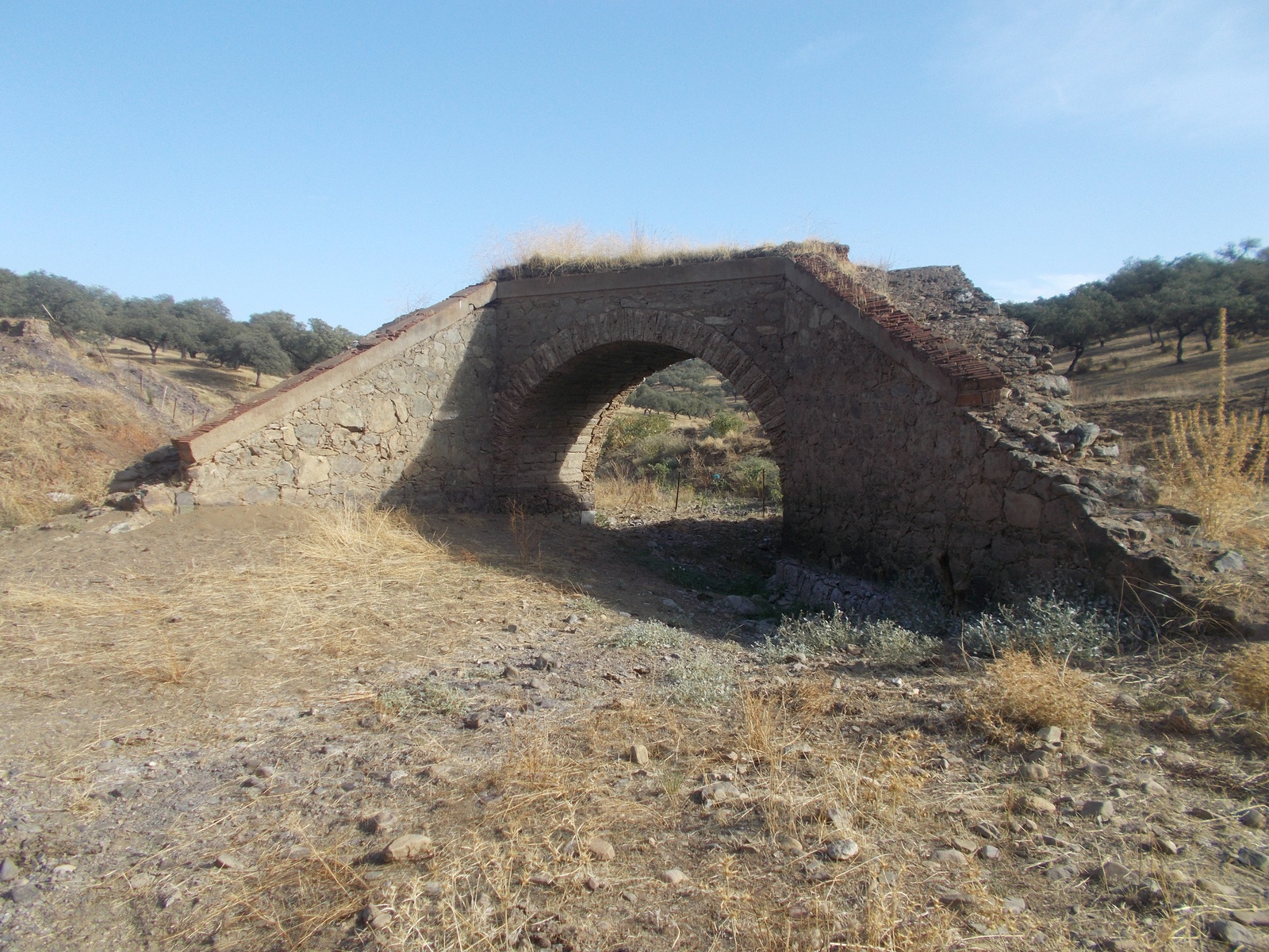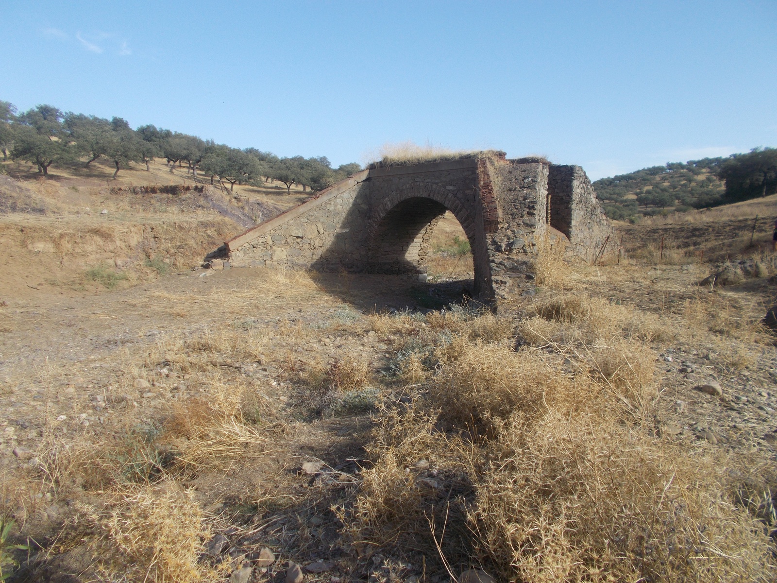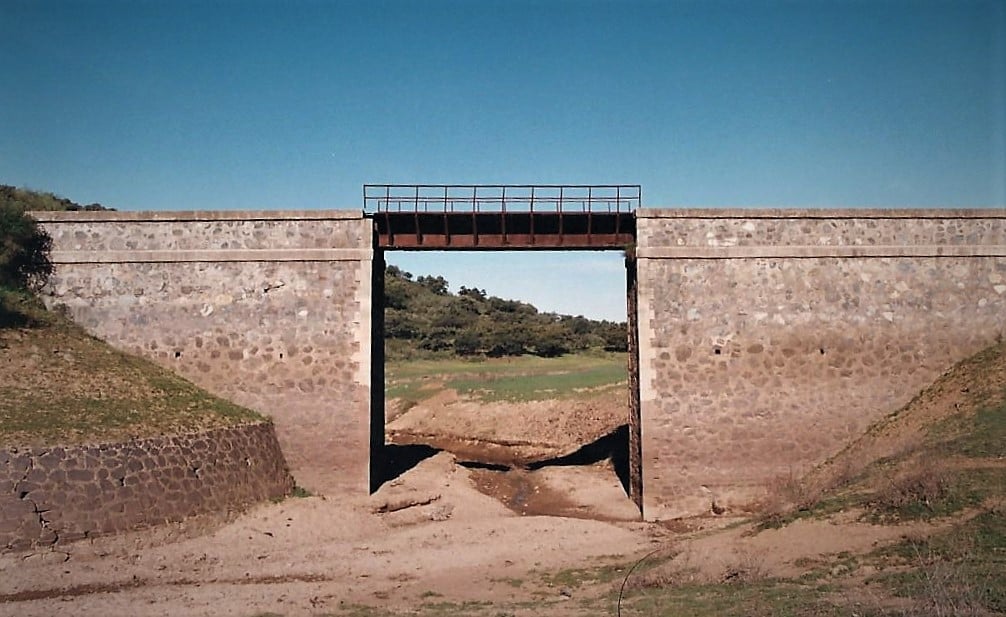 Otra característica notable del pontón es su considerable envergadura, perfectamente perceptible al compararse con la escala humana ofrecida por la figura de una persona visible en la imagen siguiente. Esta dimensión sugiere que, aunque se tratase de un paso menor, el caudal que debía evacuar no era despreciable, por lo que se optó por una solución estructural más ambiciosa y resistente.