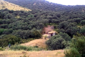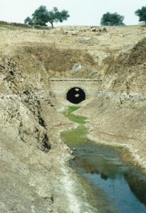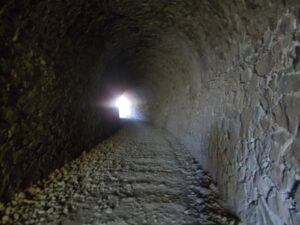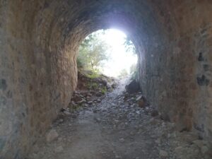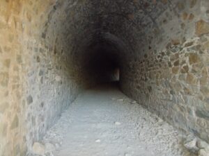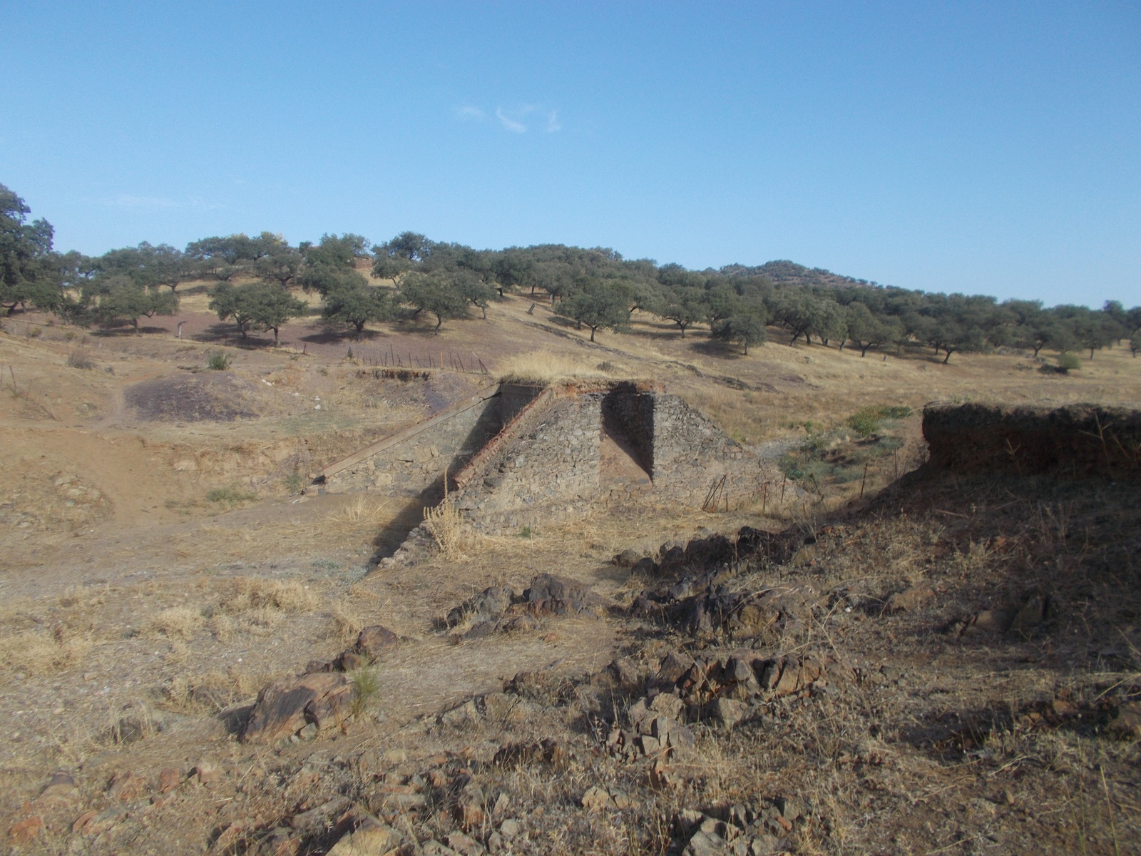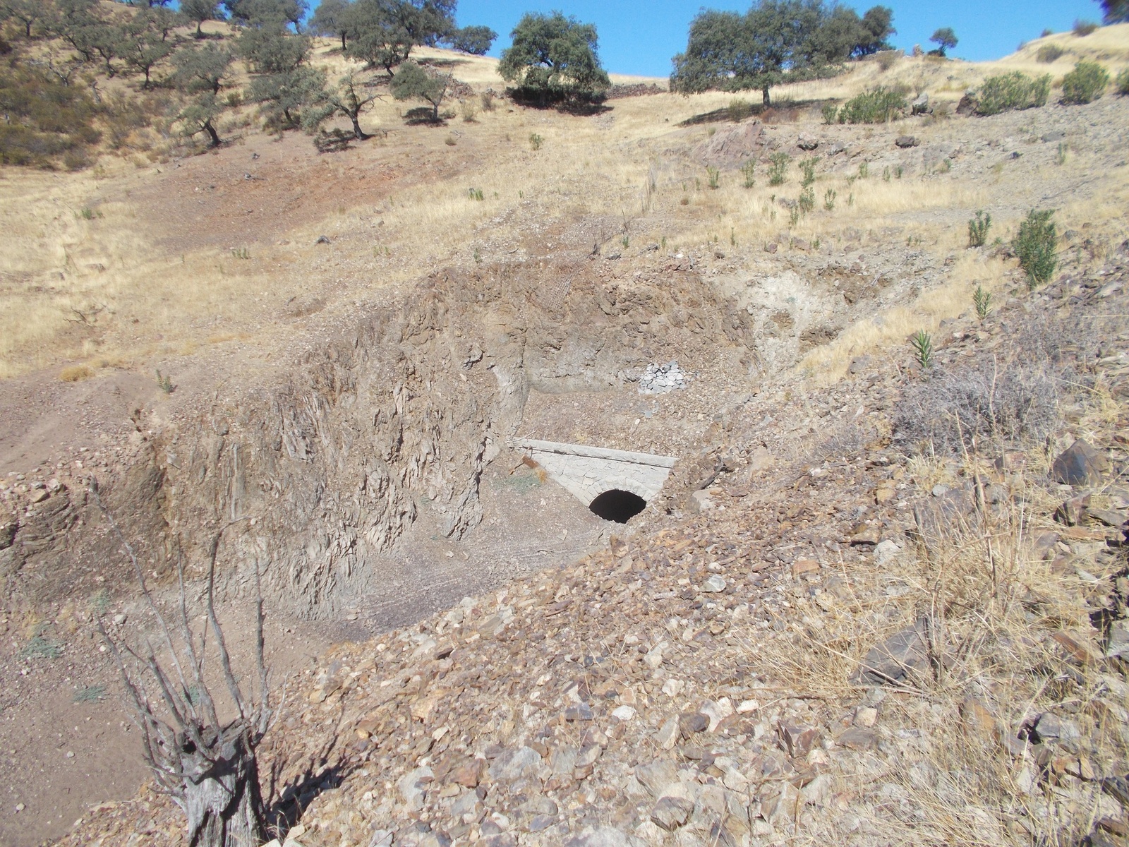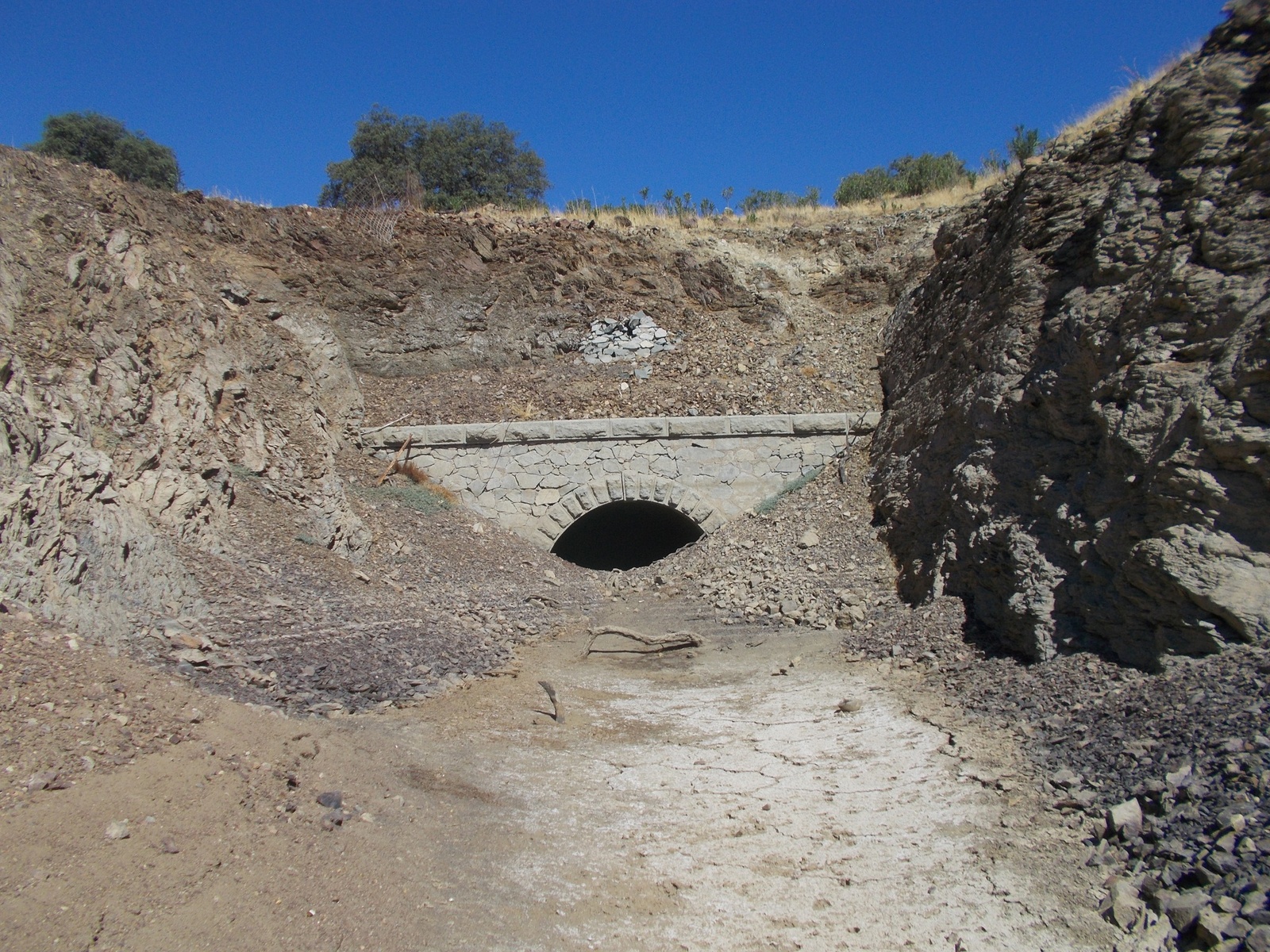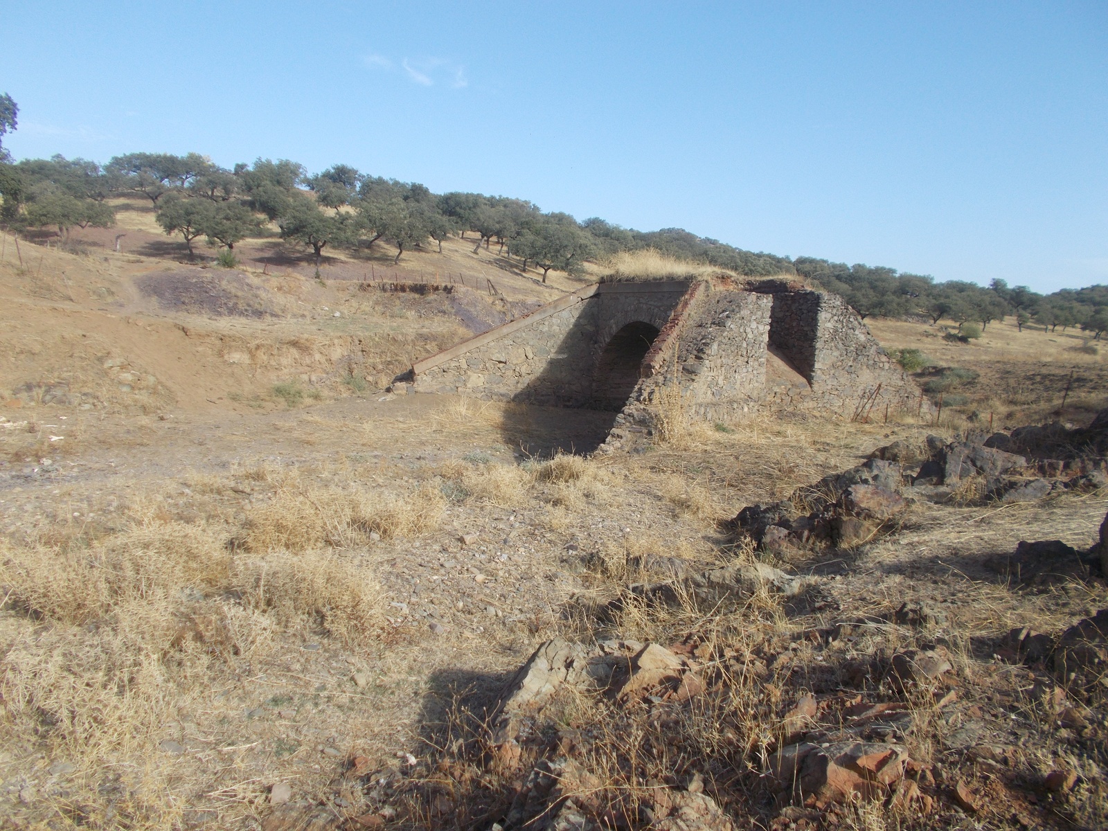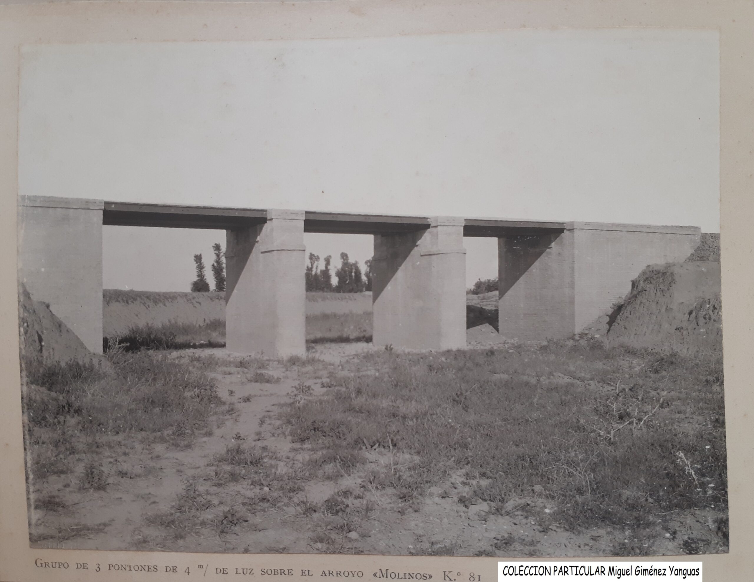 Otra característica notable del pontón es su considerable envergadura, perfectamente perceptible al compararse con la escala humana ofrecida por la figura de una persona visible en la imagen siguiente. Esta dimensión sugiere que, aunque se tratase de un paso menor, el caudal que debía evacuar no era despreciable, por lo que se optó por una solución estructural más ambiciosa y resistente.