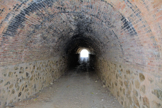 La bóveda de cañón que configura el paso hidráulico se resuelve mediante un arco compuesto por dovelas de sillería de piedra, bien labradas, dispuestas de forma radial. Esta solución sustituye a la triple hilera de ladrillo visto en otros pontones, como los de El Hoyo o El Chorrón. El uso de piedra labrada en lugar de ladrillo otorga al conjunto una apariencia más robusta y masiva, a la vez que una mayor durabilidad frente a agentes climáticos.